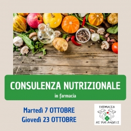Ott 07, 2025 CONSULENZA NUTRIZIONALE Nutrizionista in farmacia | Giorno 07.10.2025 e 23... Scopri di più